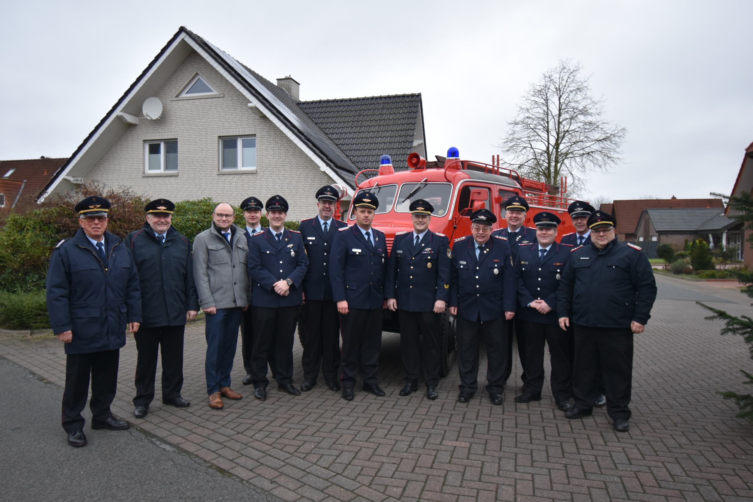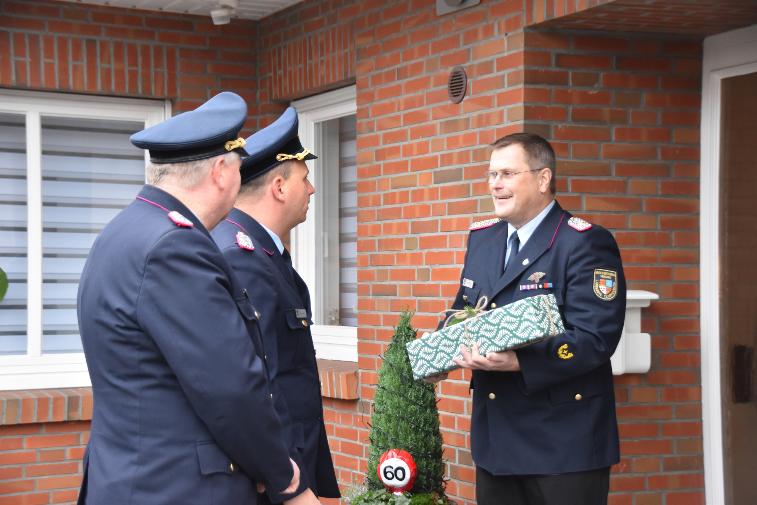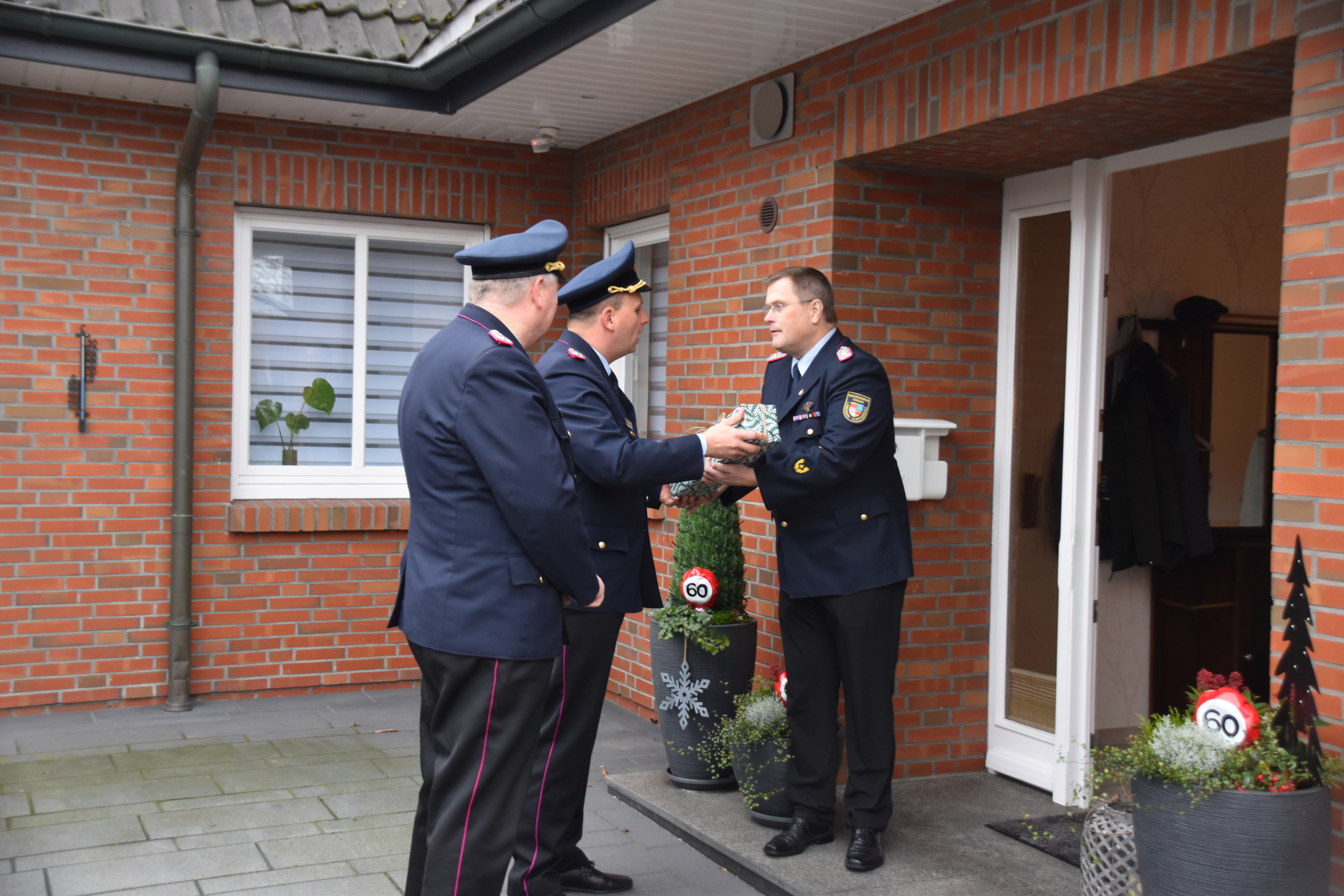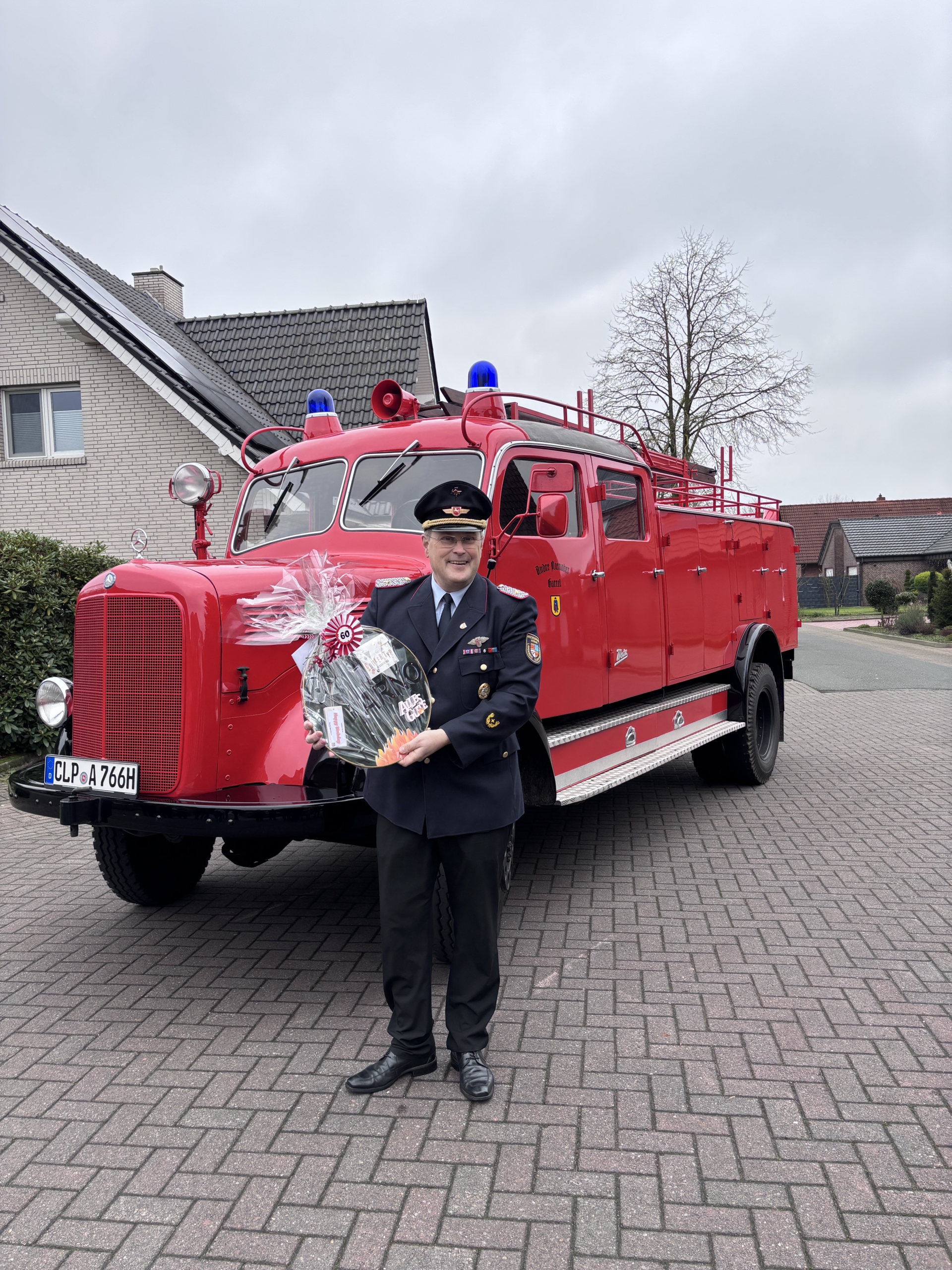 Am Dienstag, den 31.12.2024 hatten wir die große Freude, den 60. Geburtstag unseres Kreisbrandmeisters Arno Rauer gebührend zu feiern! Dieser besondere Anlass brachte zahlreiche Abordnungen der Feuerwehren aus dem gesamten Landkreis Cloppenburg sowie des THW Cloppenburg zusammen. Der festliche Tag begann bereits am frühen Morgen mit einer besonderen Überraschung für das Geburtstagskind. Arno Rauer und seine Ehefrau Petra wurden von einem historischen Feuerwehr-Oldtimer direkt vor ihrer Haustür abgeholt. Danach wurde noch ca. 800m zum Feuerwehrhaus Garrel gelaufen, begleitet von der Musikkapelle. Dort angekommen, warteten die Kameradinnen und Kameraden der Feuerwehren sowie die Gäste aus dem gesamten Landkreis mit einem großen Empfang. Ein Spalier aus Kameradinnen und Kameraden mit den Fackeln sorgten für eine beeindruckende Kulisse, die Arno Rauer sichtlich bewegte. Die Überraschung und die intensive Wertschätzung seitens seiner Feuerwehrfamilie machten den Moment zu einem unvergesslichen Erlebnis. In einer herzlichen und ausgelassenen Atmosphäre fand die Geburtstagsfeier im Feuerwehrhaus Garrel statt. Der geschmackvoll dekorierte Veranstaltungsort bot den idealen Rahmen, um diesen besonderen Meilenstein zu feiern. Neben einem kleinen Essen und musikalischen Beiträgen stand vor allem die persönliche Rede von KBM Rauer im Mittelpunkt. Die Feierlichkeiten waren nicht nur eine Gelegenheit, Arnos 60. Geburtstag zu feiern, sondern auch ein Ausdruck der tiefen Dankbarkeit für seine Verdienste um die Feuerwehr und den Schutz der Bevölkerung. Viele Gäste äußerten persönlich ihre besten Wünsche für die Zukunft und betonten, wie sehr sie Arnos Engagement und Menschlichkeit schätzen.