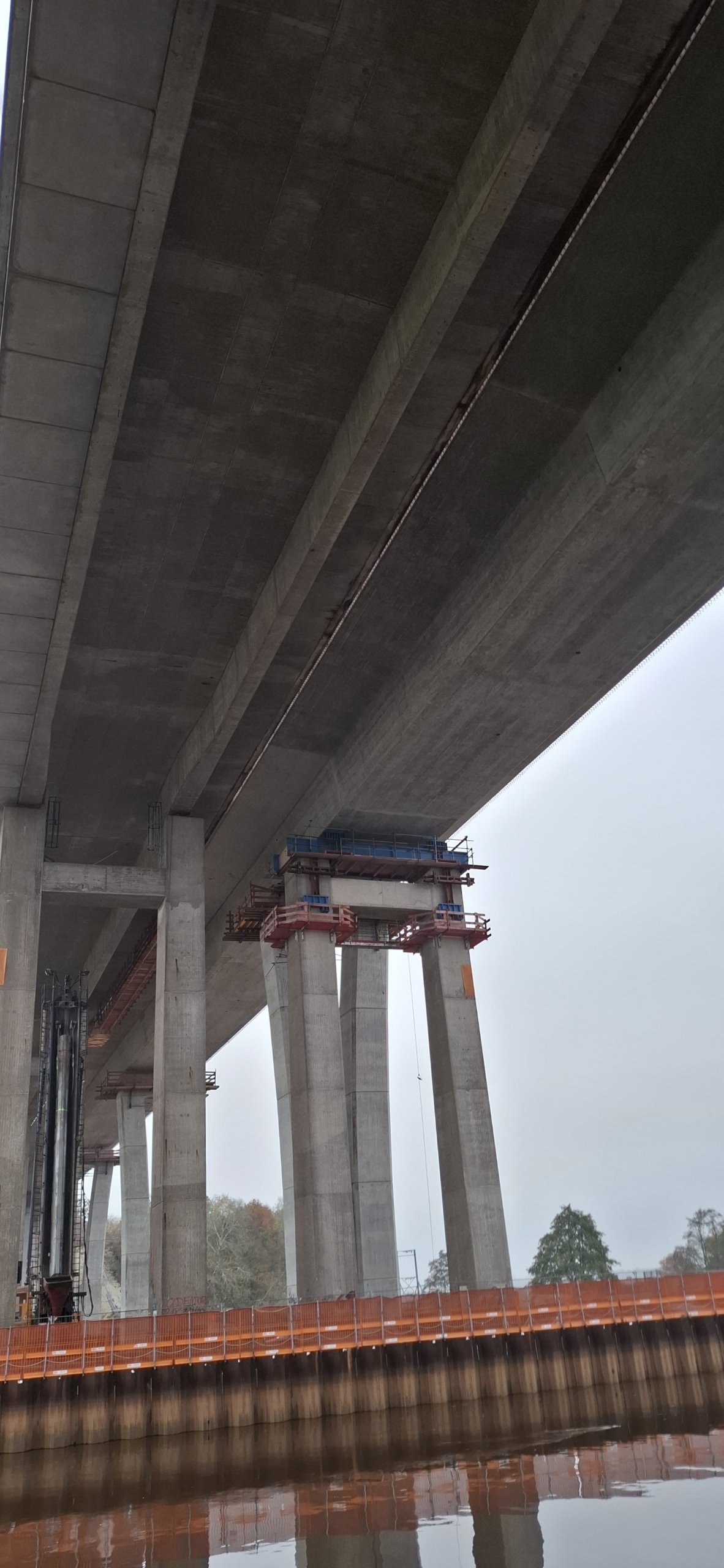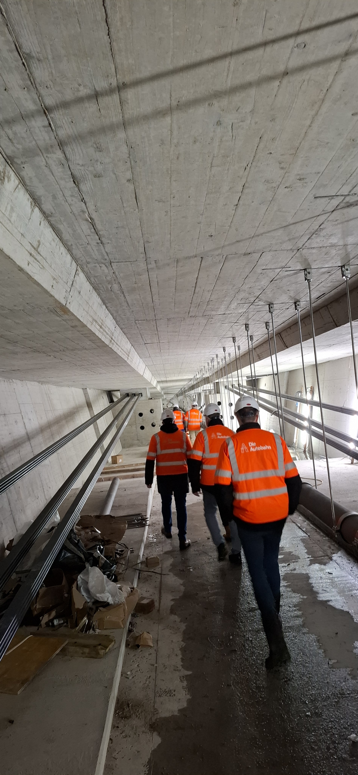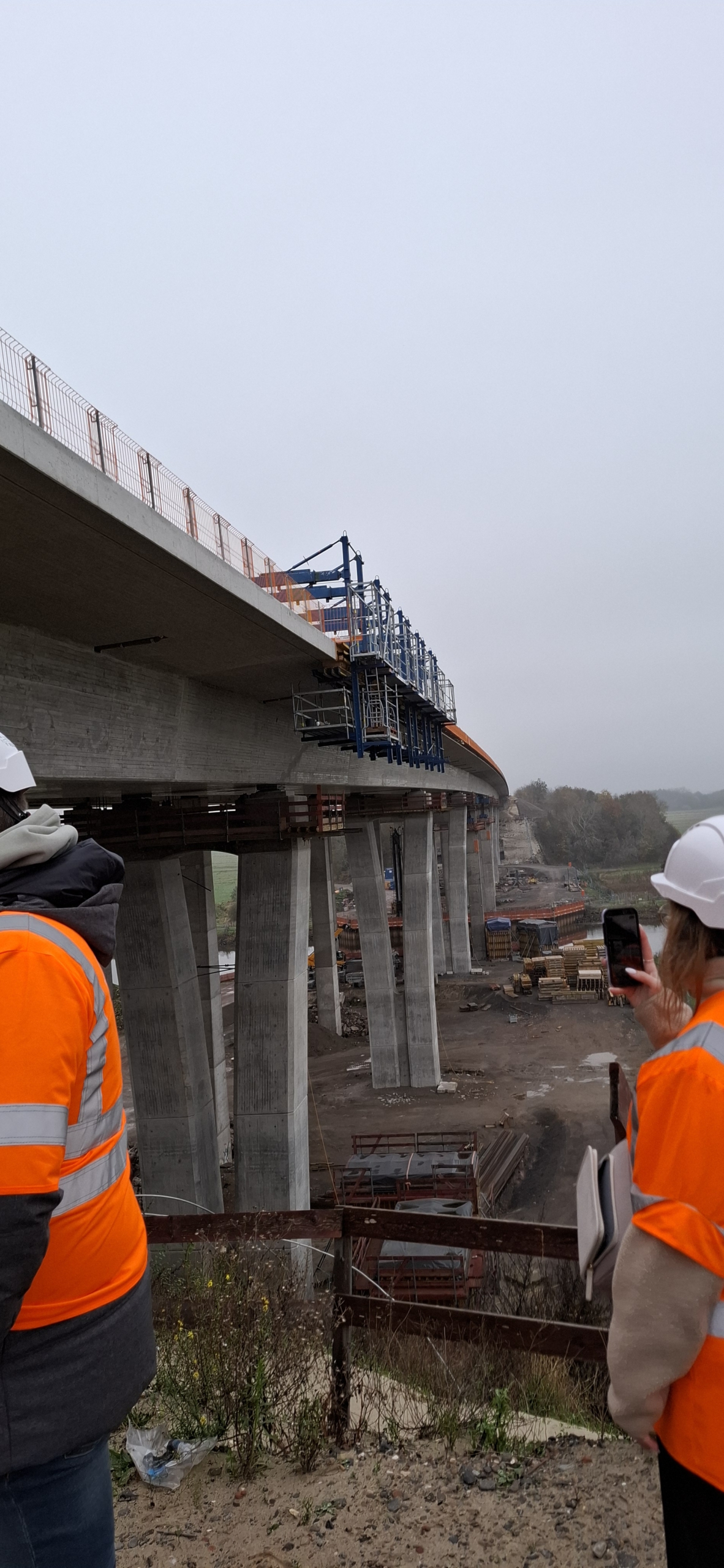 Nach der Vorstellung des Bauprojektes ging es ausgerüstet mit Warnwesten und Helm direkt auf die Baustelle. Zu den Höhepunkten der Besichtigung gehörten die Bauweise der neuen Brückenpfeiler, die Besichtigung des Brückeninneren unterhalb der Fahrbahn und das Betreten der neuen Brücke in Fahrtrichtung Wilhelmshaven in 30 Meter Höhe.