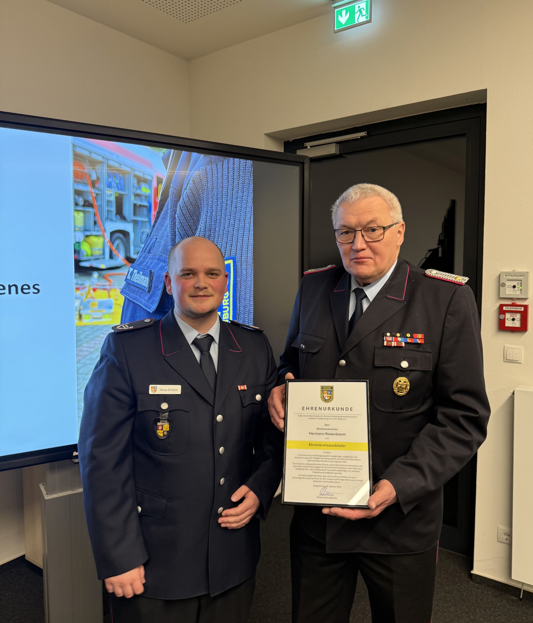 Mit besonderem Dank für ihre langjährige und verlässliche Mitarbeit in der Kreisausbildung wurden Jens Kneese und Hermann Rosenbaum zu Ehrenkreisausbildern ernannt.