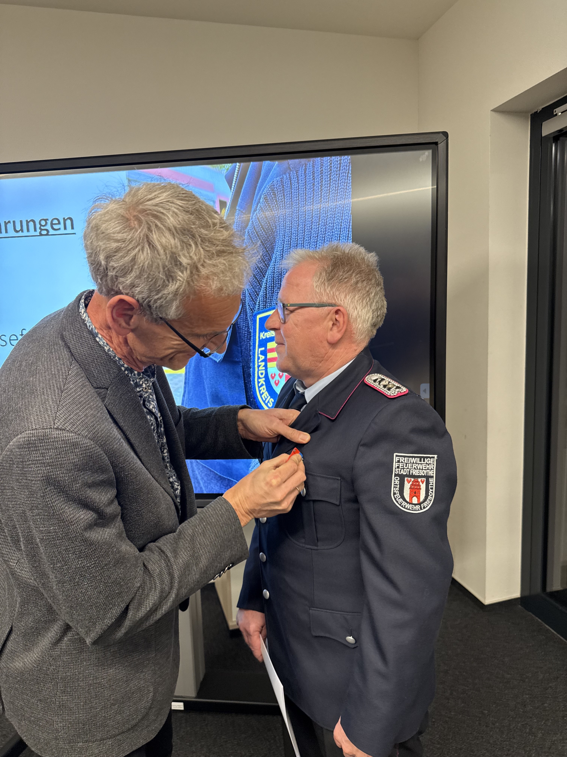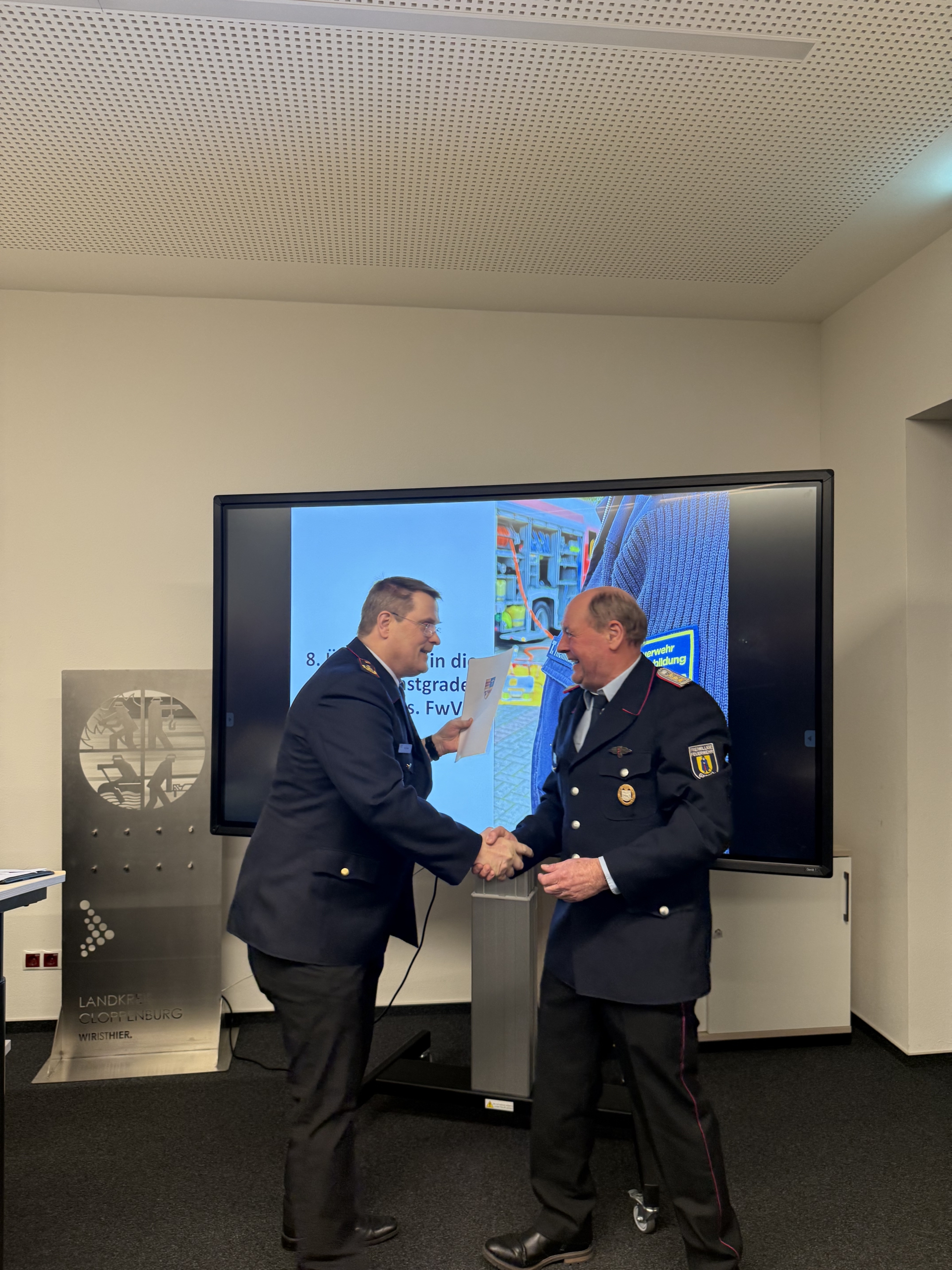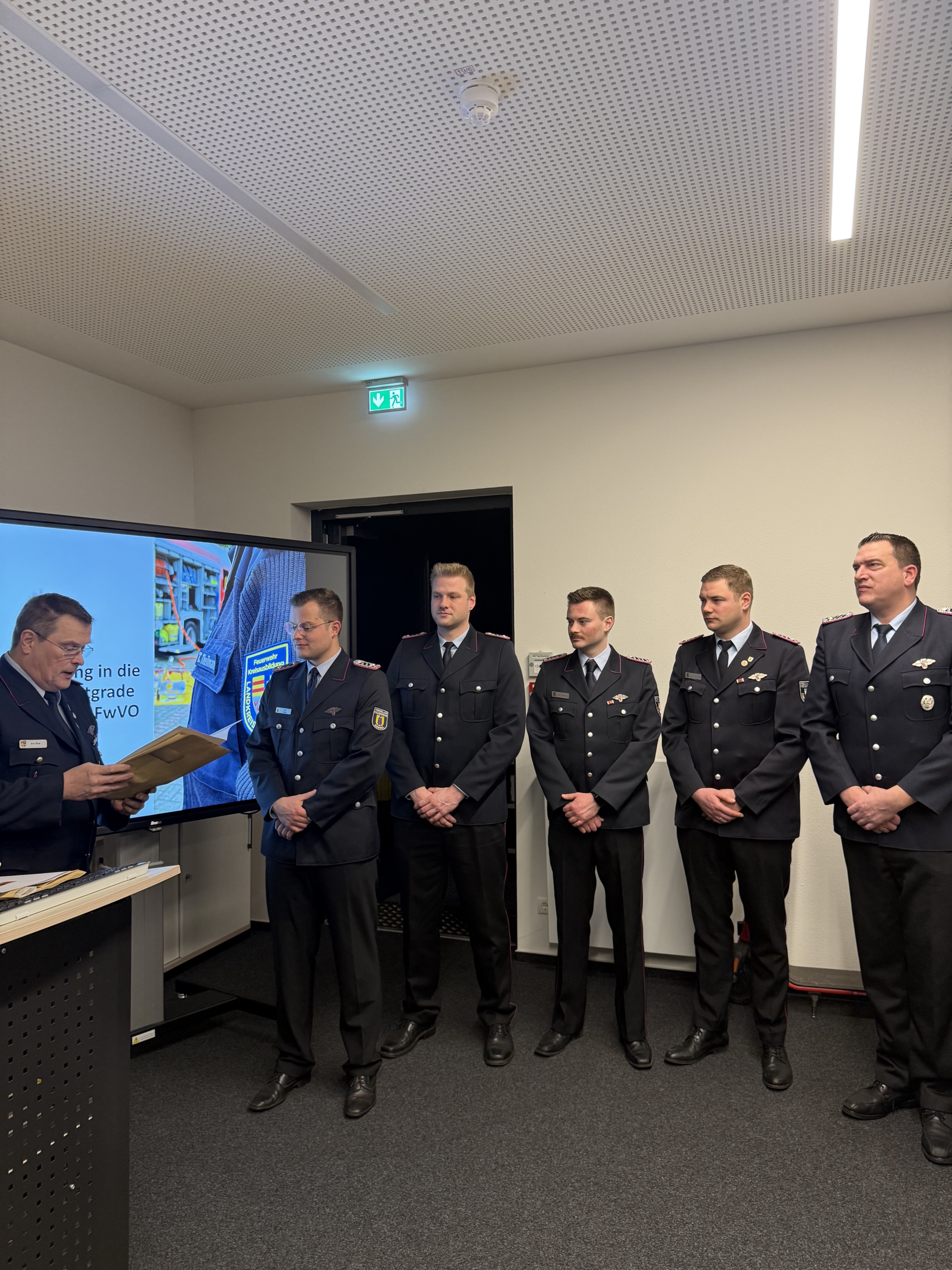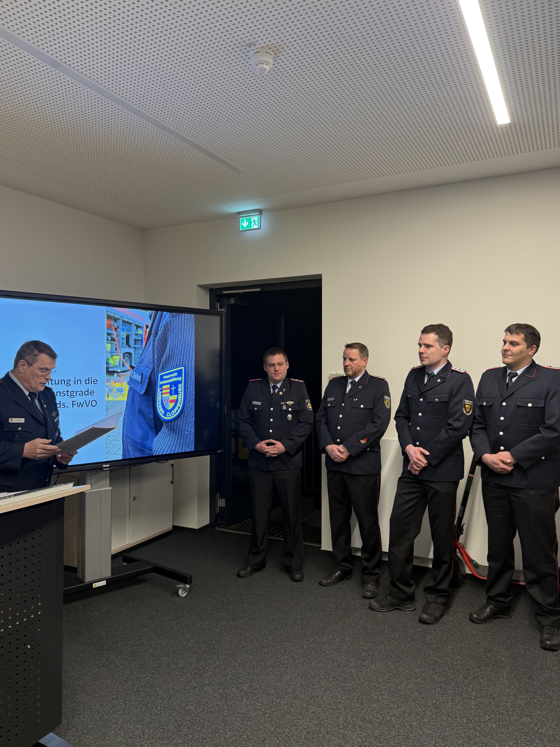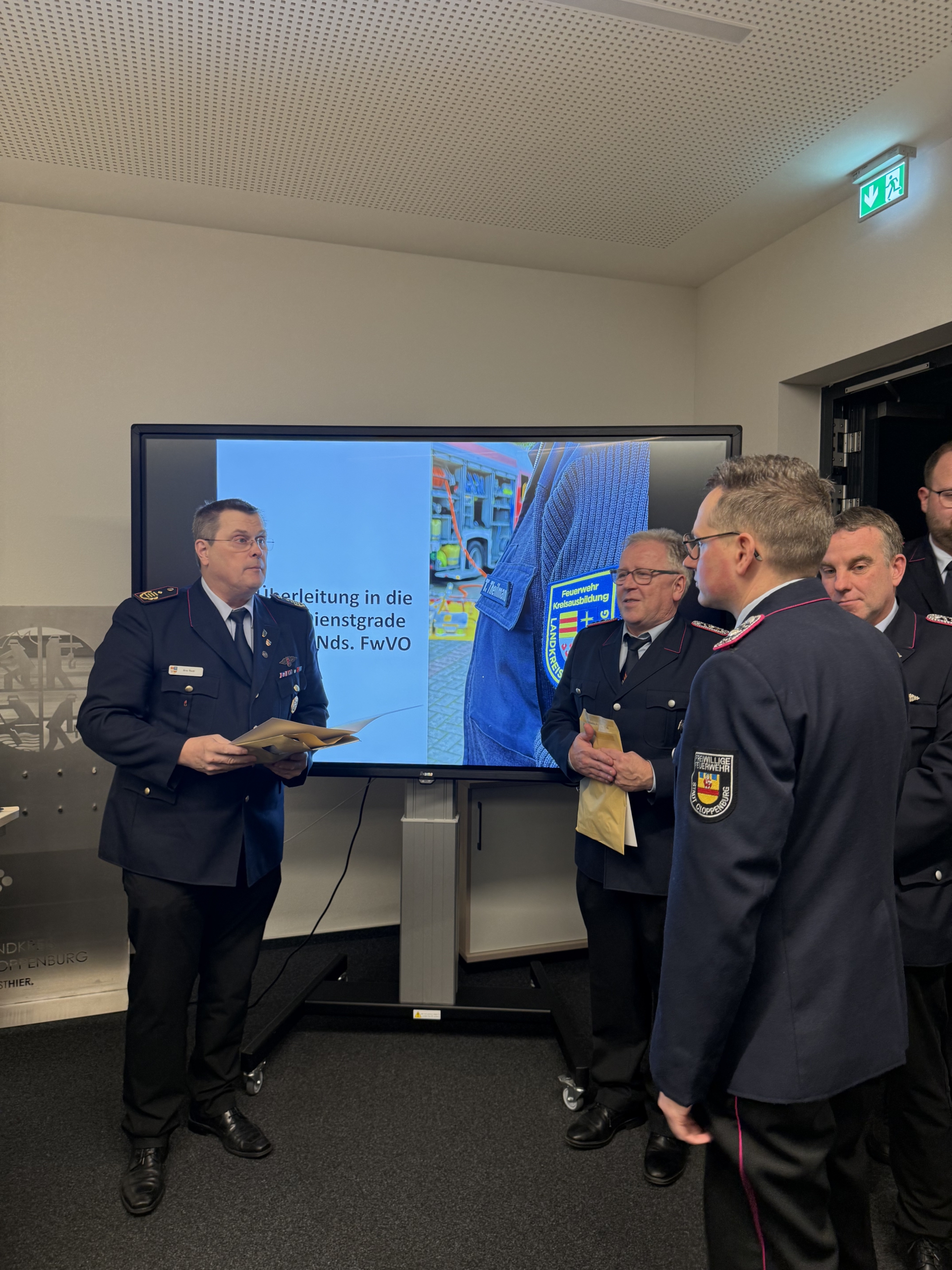 Im weiteren Verlauf des Abends wurde zudem die Überleitung in die neuen Dienstgrade nach der Niedersächsischen Feuerwehrverordnung (Nds. FwVO) vollzogen. Dazu überreichte Kreisbrandmeister Arno Rauer die Urkunden und gab die neuen Schulterstücke an die Kreisausbilder aus.