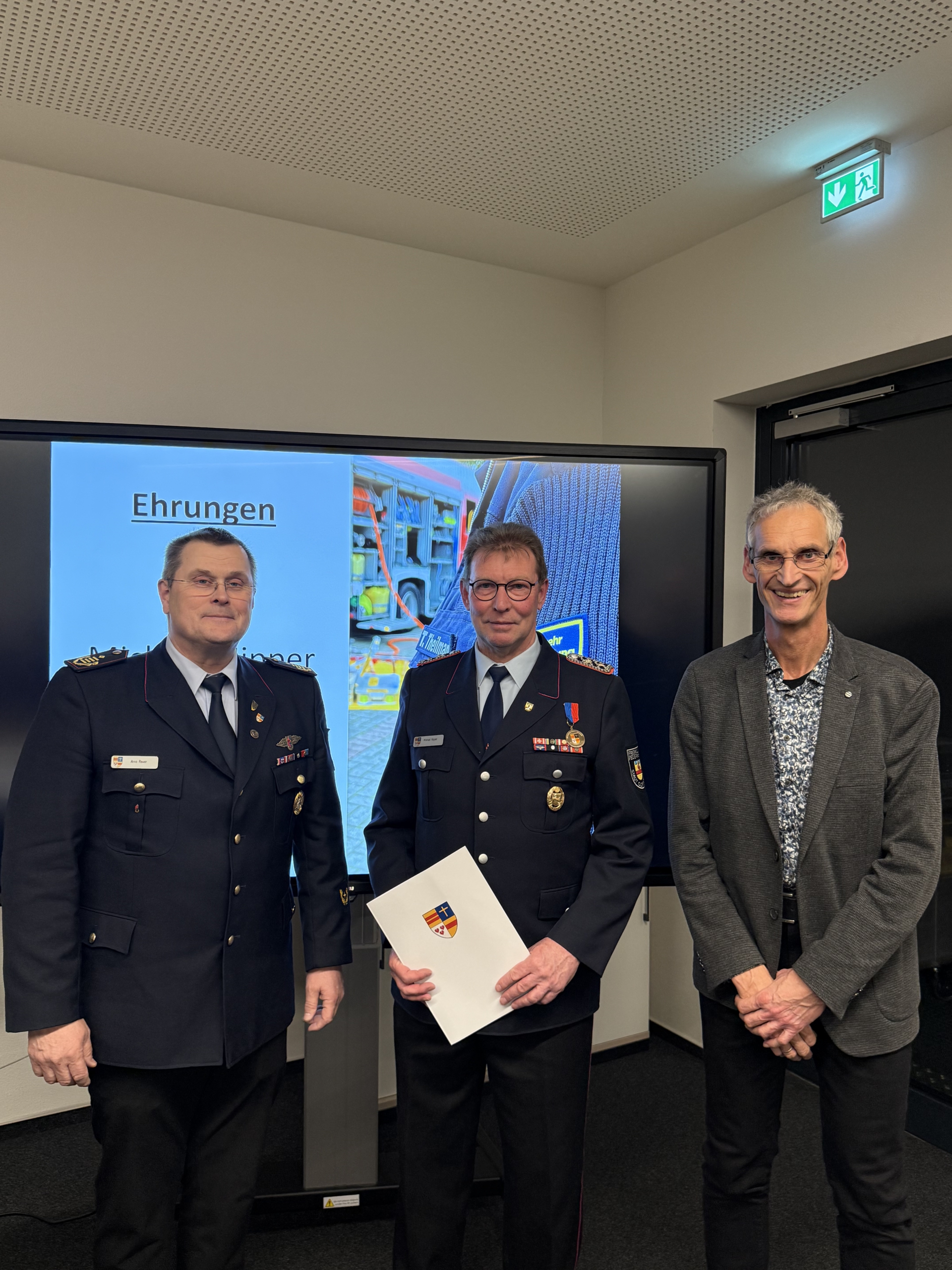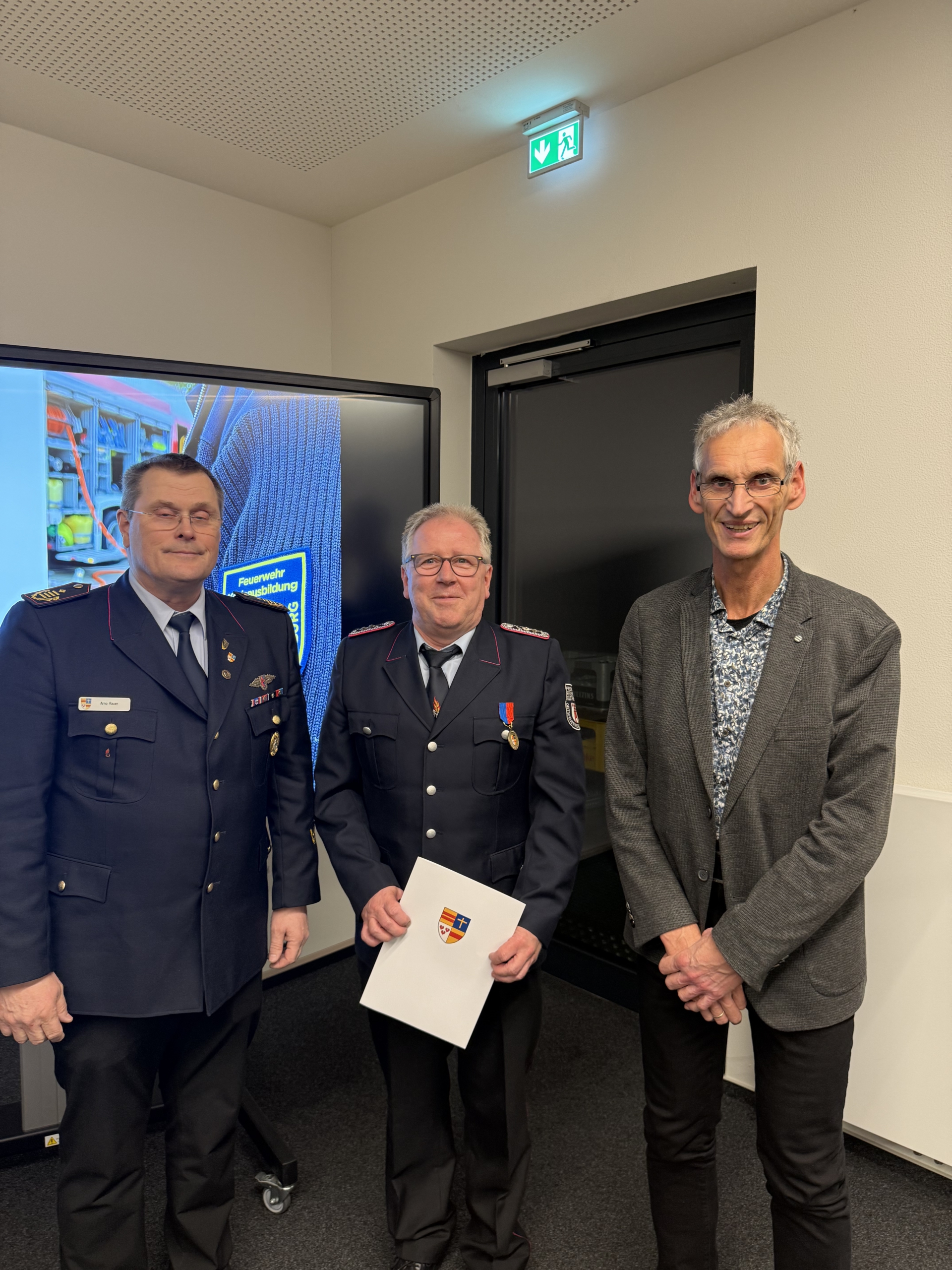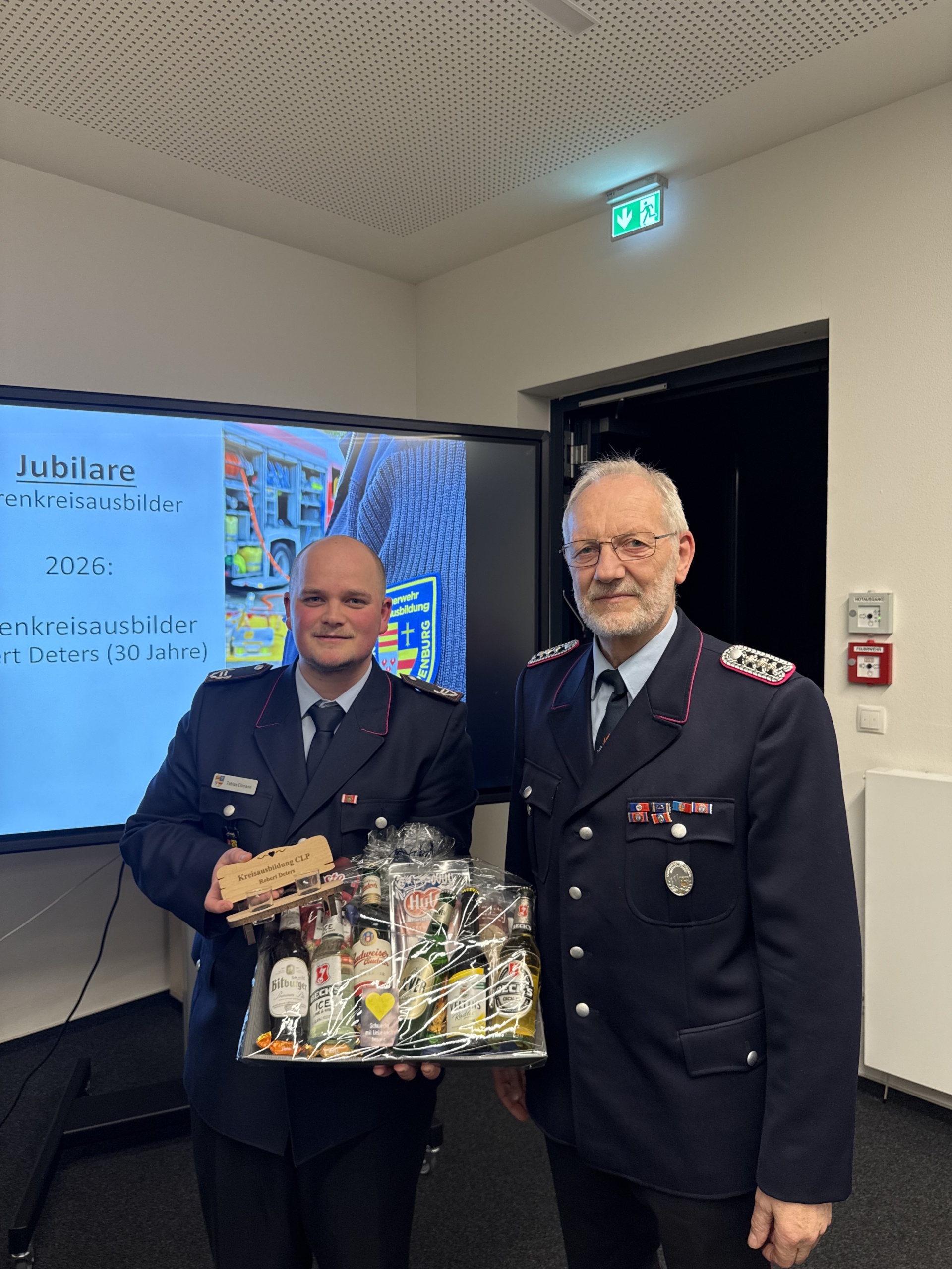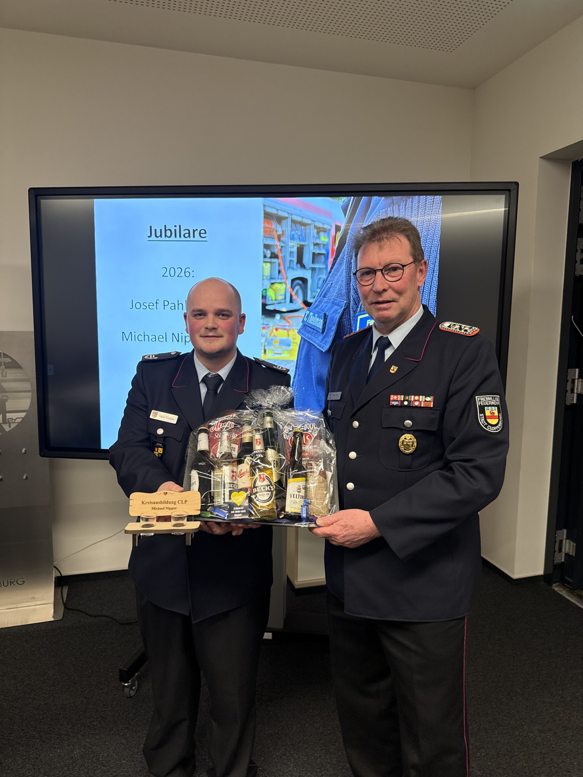 Im Rahmen der anschließenden Ehrungen nahm Kreisbrandmeister Arno Rauer die Auszeichnungen vor. Dabei wurden Josef Pahlke für 15 Jahre sowie Michael Nipper für 30 Jahre verdienstvolle Tätigkeit in der Kreisausbildung besonders gewürdigt.