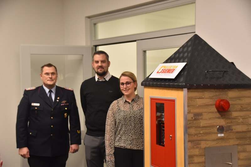 Ein besonderes Highlight der Sitzung war die offizielle Übergabe einer neuen Schulungsanlage für Brandmeldetechnik durch Stefanie Richter und Hendrik Richter von der Firma Elektro Siemer. Herr Heiko Wichmann (Fachmann für Übertragungstechnik bei der Firma Siemer) übernahm das Wort und erläuterte die großzügige Spende.
