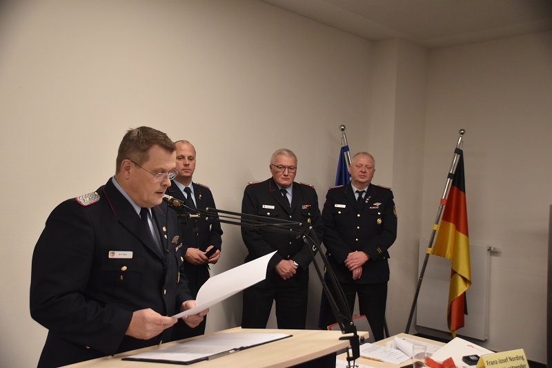 KBM Arno Rauer nutzte seinen Bericht, um auf die neuesten Entwicklungen im Bereich des Niedersächsischen Brandschutzgesetzes (NBranSchG) sowie der noch in Arbeit befindlichen Feuerwehrverordnung einzugehen, weiter bedankte er sich bei allen Funktionsträgern und Orts-, Stadt- und Gemeindebrandmeistern für die hervorragende Zusammenarbeit.