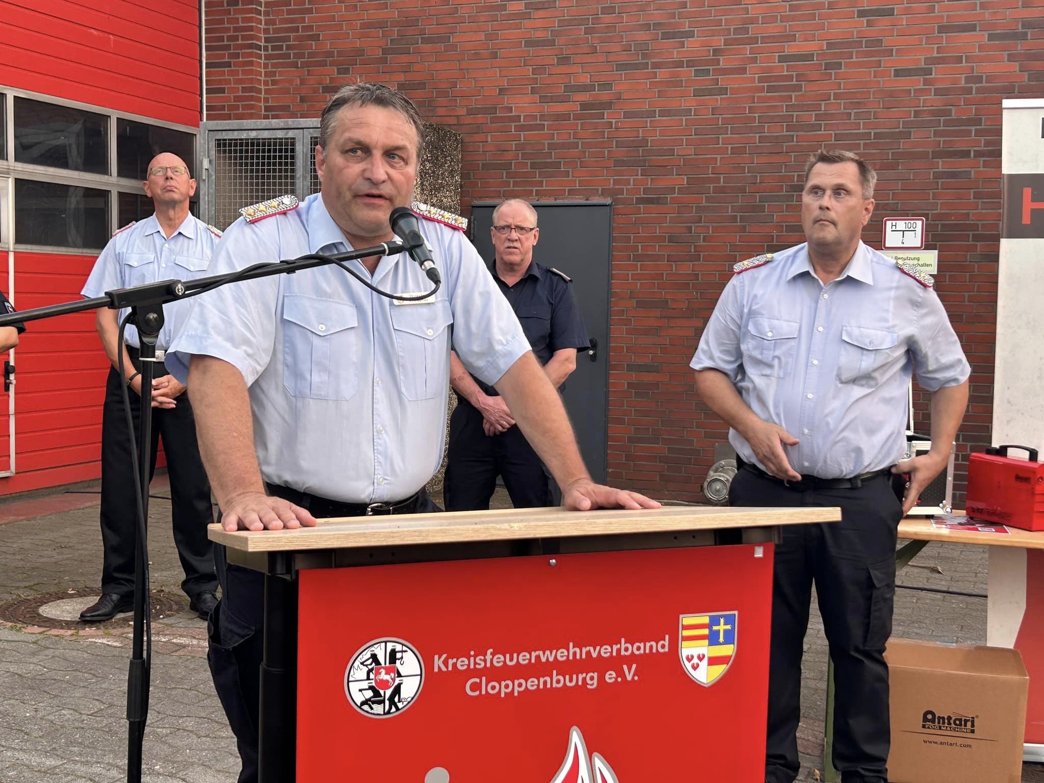 Am Samstag, den 09. September 23 fand an der Thülsfelder Talsperre im Landkreis Cloppenburg, eine große Übung zur Waldbrandbekämpfung statt. Die Vorbereitungen für die Waldbrandübung dauerten ca. 6 Monate. So eine große Einsatzübung hat es im Landkreis Cloppenburg noch nicht gegeben, so Kreisbrandmeister Arno Rauer. Die Kreisfeuerwehrverbände der Landkreise Cloppenburg, Vechta und Ammerland, die ELW 2 Teams, das Drohnenteam des LK Cloppenburg und des THW´s, sowie das Presse- und Social Media Team der Feuerwehren, DRK, Niedersächsisches Landesforstamt, Technische Einsatzleitung des LK Cloppenburg und die Technische Einsatzleitung Emsland nahmen mit 620 Einsatzkräften und 100 Fahrzeugen teil. Das Hauptaugenmerk lag in der Wasserversorgung, die von Tanklöschfahrzeugen und Landwirten mit Güllefässer, bewältigt wurde. Dazu sind im Waldgebiet mehrere faltbare Wassertanks mit bis zu 10.000 Liter Fassungsvermögen, im Pendelbetrieb gefüllt worden. Von dort aus wurde das Wasser dann zu den einzelnen Einsatzabschnitten gefördert.