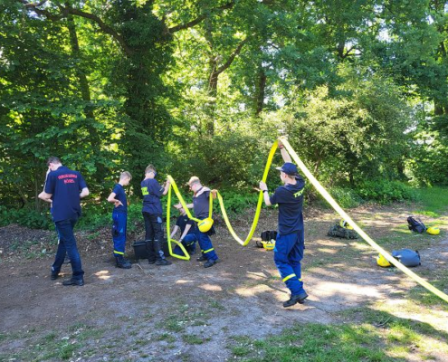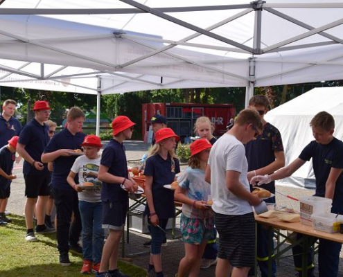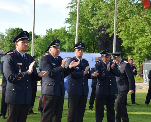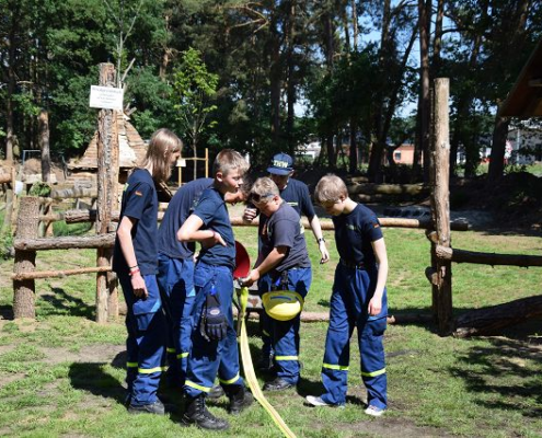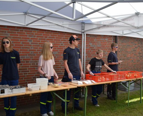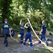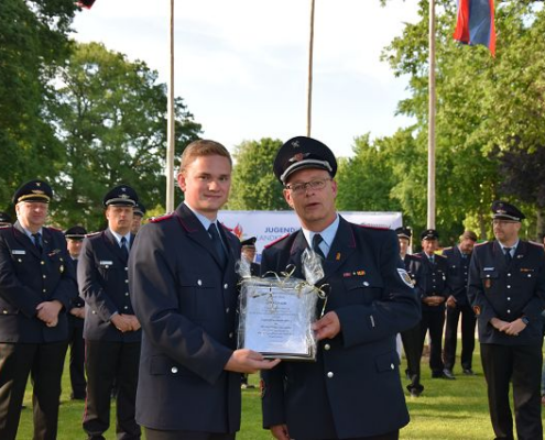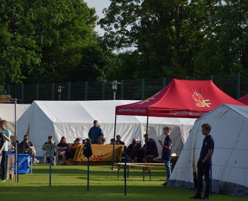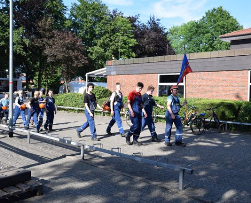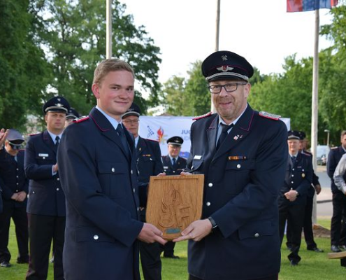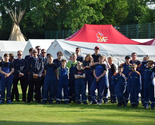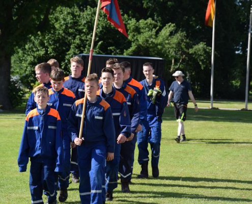 Am Montag ging es mit einem weinenden und einem lachenden Auge dem Ende des Pfingstzeltlager entgegen, Freundschaften wurden geschlossen und der Zusammenhalt zwischen den einzelnen Jugendfeuerwehren wurde verstärkt. Gegen 9:00 Uhr gab es dann die ,,Lagerolympiade“, was den Kids sehr viel Spaß machte. Nach dem Mittagessen wurde dann langsam alles verpackt, Zelte abbauen, Feuerstellen und den Platz säubern. Gegen 15:30 Uhr ging es noch einmal für alle Gruppen auf den Sammelplatz, wo dann die Pokalverleihung stattfand. Kreisjugendfeuerwehrwart Artur Kasperczyk bedankte sich noch einmal bei seinen Stellvertretern David Middendorf und Henning Hibben für die sehr gut Mithilfe im Zeltlager. Auch stellv. Kreisbrandmeister Franz-Josef Nording bedankte sich bei allen Teilnehmerinnen und Teilnehmern für das sehr gut geplante Zeltlager. Weiter ging es zur Pokalverleihung, hier wurden folgende Plätze erreicht: