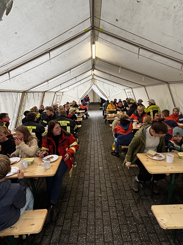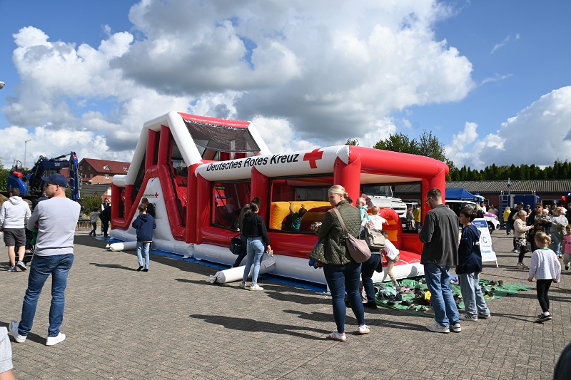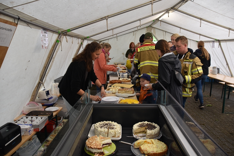 Während die Jüngsten sich an Hüpfburgen austobten oder die Einsatzfahrzeuge erkundeten, konnten sich die Erwachsenen bei Kaffee und Kuchen stärken.