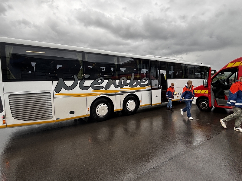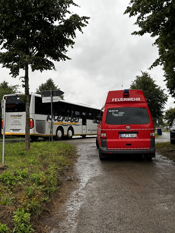 Bereits zu Beginn wurde ein komplexes Szenario gestellt: Ein Kesselwagen explodierte, kippte auf ein darunter stehendes Fahrzeug und setzte ein gegenüberliegendes Containerdorf in Brand. Mehrere Personen wurden dabei verletzt oder vermisst. Parallel dazu ereignete sich ein schwerer Busunfall: Ein Reisebus kam von der Fahrbahn ab und stürzte einen Abhang hinunter. Mehrere Fahrgäste erlitten dabei teils schwere Verletzungen, sodass sofort ein Massenanfall von Verletzten (MANV 7) ausgelöst werden musste.