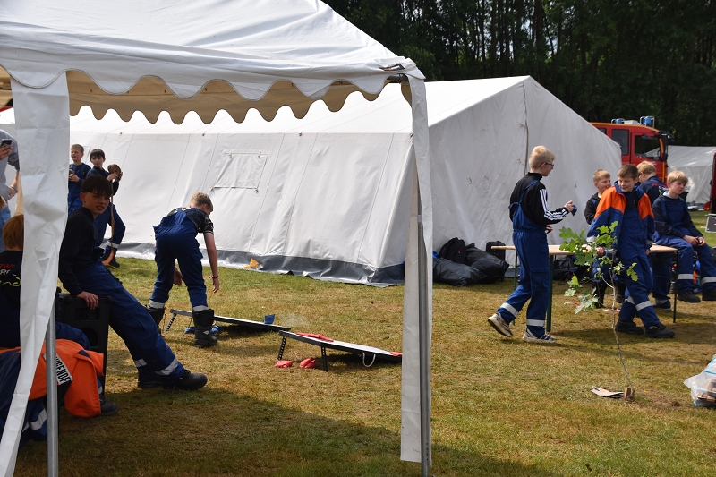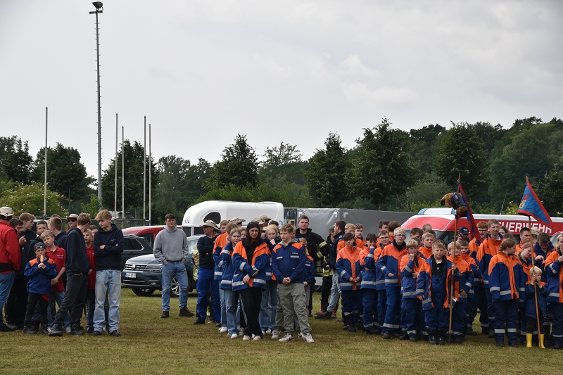 Im Anschluss begannen die Wettbewerbe, die rund 900 Zuschauer auf den Festplatz lockten. Bei den Gruppen galt es, in den Kategorien TLF (Tanklöschfahrzeug), TS (Tragkraftspritze) und Jugendfeuerwehr Schnelligkeit, technisches Wissen und Teamarbeit unter Beweis zu stellen. Zahlreiche Schiedsrichter sorgten für faire Abläufe. Ein besonderes Highlight war die Wettkampfübung TS von den Führungskräften im Bereich des Oldenburgischen Feuerwehrverbandes. Hier schauten fast alle Einsatzkräfte und Zuschauer diese Übung zu, man musss im nach hinein sagen, es war rundum eine gelungene Leistung.