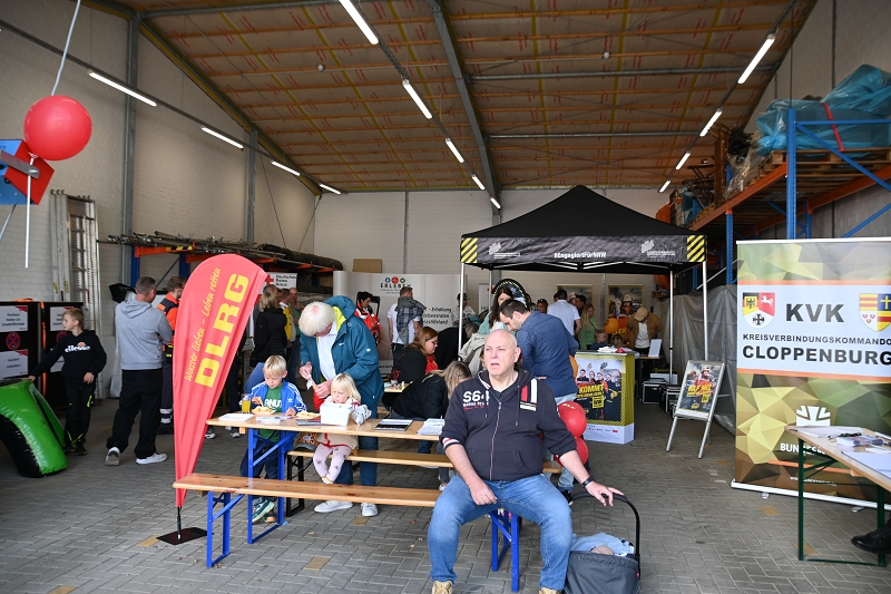Neben Action und Technik kamen auch Information und Mitmachangebote nicht zu kurz: Die Drehleiter der Feuerwehr Cloppenburg, das Katastrophenschutz-Zelt, der Drohnenzug, das AB Hygiene sowie die Präsentationen der Kreisfeuerwehrbereitschaft und der Technischen Einsatzleitung des Landkreises Cloppenburg stießen auf großes Interesse. Ergänzt wurde das Angebot durch Infostände von THW, DLRG, DRK und Polizei.