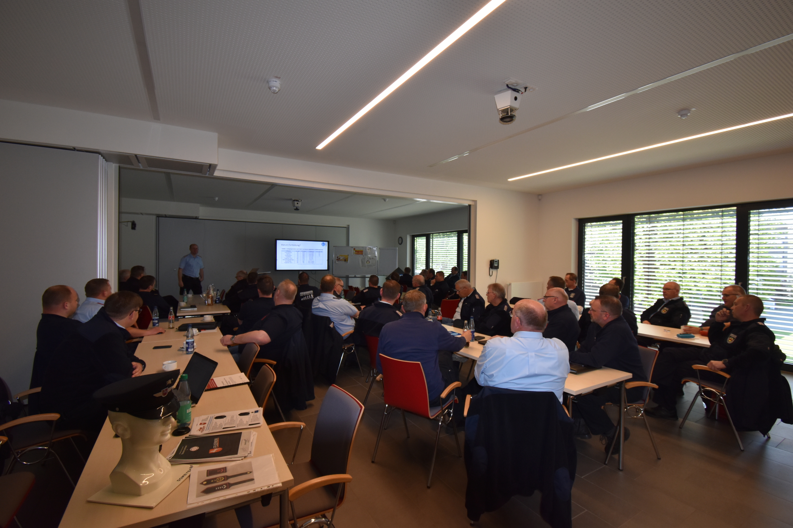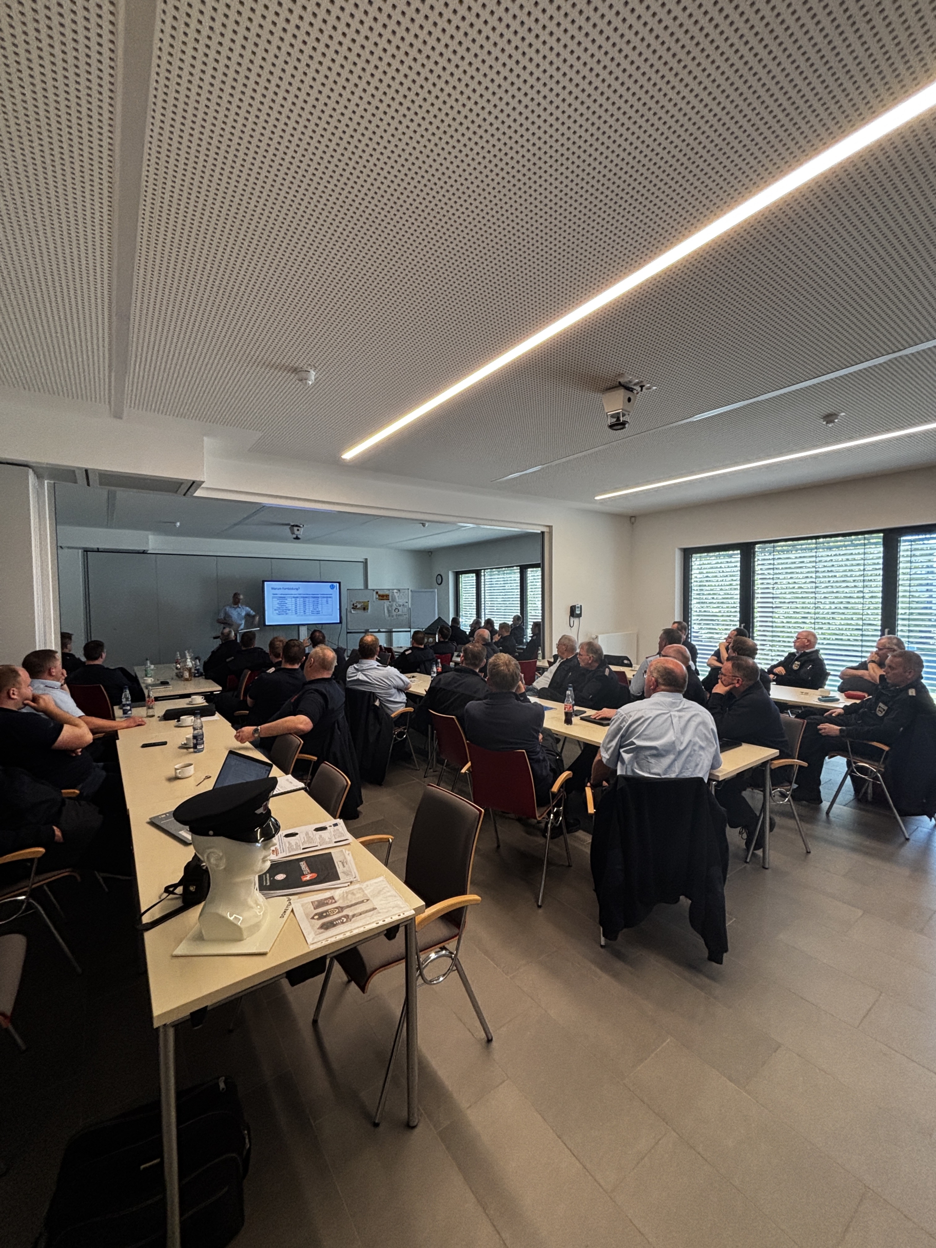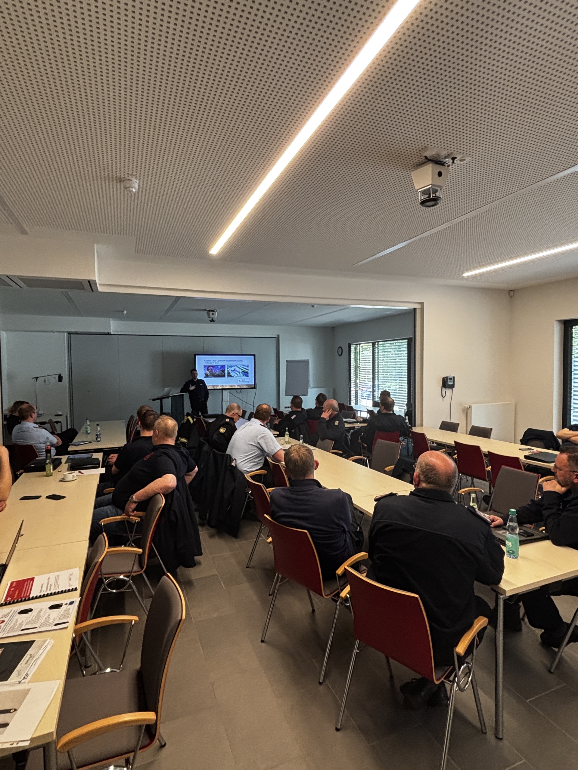 Im Planspiel „Gruppen- und Zugführer – und jetzt?“ befasste sich Michael Wöste mit der Notwendigkeit ständiger Fort- und Weiterbildung. Ziel sei es, Führungskräfte praxisnah auf die Herausforderungen im Einsatz vorzubereiten, darunter Organisation, Lageerkundung, Einsatz neuer Geräte sowie die Zusammenarbeit mit anderen Organisationen.