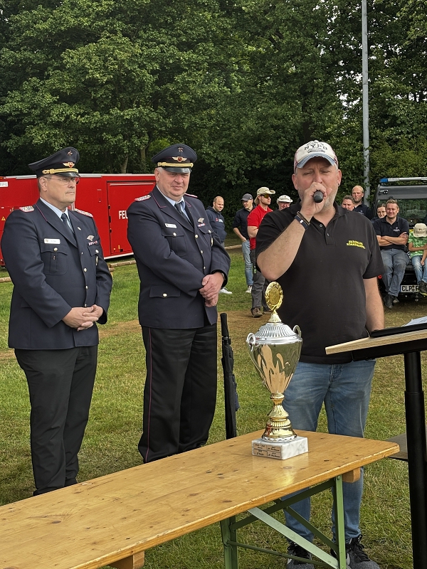 Feuerwehr und Polizei – wir stehen oft gemeinsam an der Einsatzstelle. Ob Brände, Verkehrsunfälle, technische Hilfeleistungen oder Rettungseinsätze – in all diesen Situationen zeigt sich: Die Zusammenarbeit zwischen Polizei und Feuerwehr funktioniert hervorragend. Verlässlich, vertrauensvoll und kollegial – genau so, wie es im Einsatz sein muss. Dafür möchte ich Ihnen im Namen der gesamten Polizeiinspektion ganz herzlich danken. Bundesinnenministerin Nancy Faeser hat es treffend formuliert: „Das Ehrenamt ist das Rückgrat unserer Demokratie.“