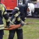 Sonderaufgaben für den 1. Zug: Während des Einsatzes fällt eine Tragkraftspritze aus, diese muss sofort gewechselt werden. Die B-Leitung ist defekt, hier muss eine 2. B-Leitung verlegt werden.