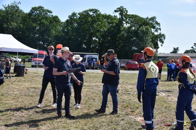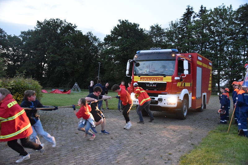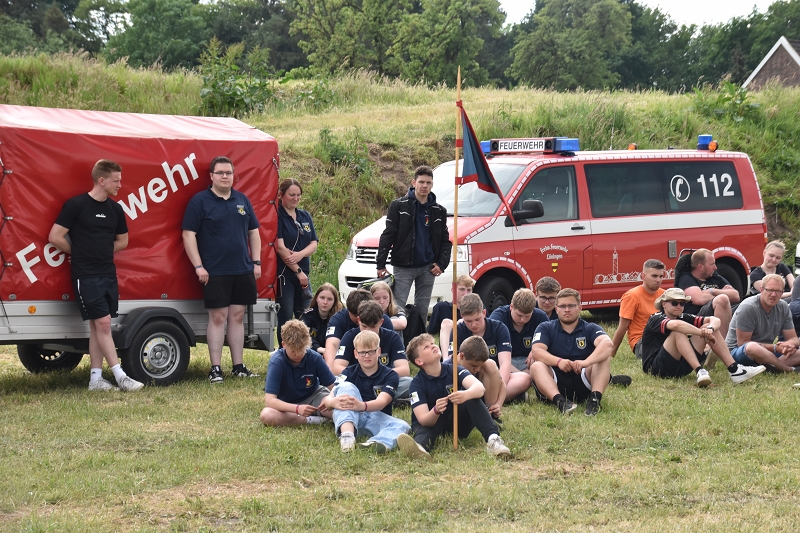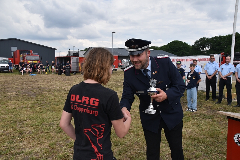 Am Montag ging es mit einem weinenden und einem lachenden Auge dem Ende des Pfingstzeltlager entgegen, Freundschaften wurden geschlossen und der Zusammenhalt zwischen den einzelnen Jugendfeuerwehren wurde gestärkt. Gegen 9:00 Uhr gab es dann die ,,Lagerolympiade“, was den Kids sehr viel Spaß machte. Nach dem Mittagessen wurde dann langsam alles verpackt, Zelte abbauen, Feuerstellen und den Platz säubern. Gegen 15:00 Uhr ging es noch einmal für alle Gruppen auf den Sammelplatz, wo dann die Pokalverleihung stattfand. Kreisjugendfeuerwehrwart David Middendorf bedankte sich noch einmal bei seinen Stellvertretern Henning Hibben und Jan Wasserthal für die sehr gut Mithilfe im Zeltlager. Auch der Stellv. Kreisbrandmeister Franz-Josef Nording bedankte sich bei allen Teilnehmerinnen und Teilnehmern für das sehr gut geplante Zeltlager. Weiter ging es zur Pokalverleihung, hier wurden folgende Plätze erreicht: