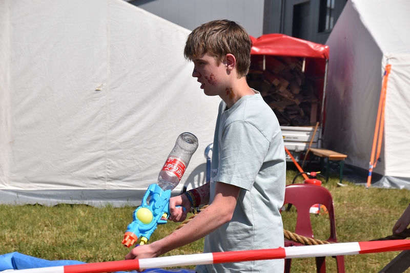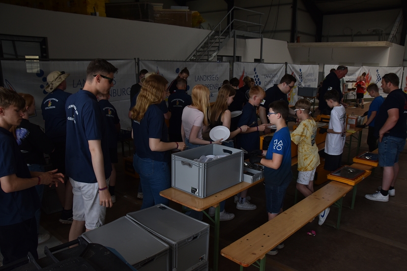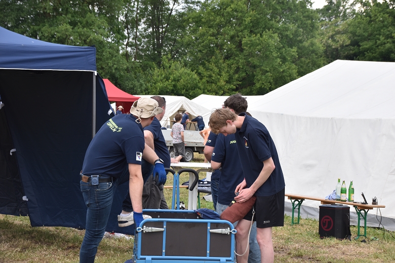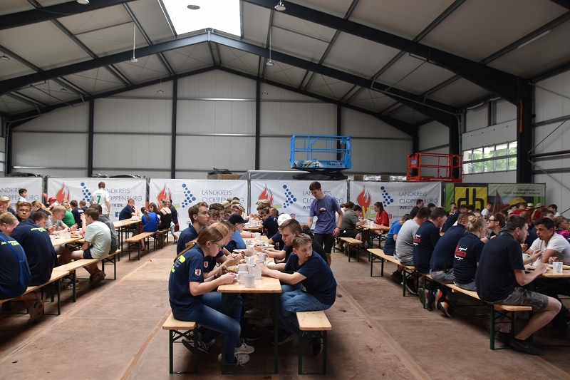 Sonntag über Tag meinte der Wettergott es gut mit den Mädchen und Jungs, somit war der Tag wieder einmal perfekt. Nach dem Frühstück ging es gleich weiter mit den Schwimm und Schießwettbewerben, einige nutzten noch das schöne Wetter und sprangen in ihren Pool. Ab 15:00 Uhr bereiteten die Frauen der FF Scharrel und FF Ramsloh, Kaffee und Kuchen vor, somit konnten es sich alle Besucher gemütlich machen. Gegen 17:00 Uhr wurde dann in jedem Camp mit den Eltern und weiteren Gästen gegrillt, dieses machte allen sehr viel Spaß. Gegen 19:30 Uhr fand die Miniplaybackshow statt, da es aber während der Show so anfing zu regnen und die Miniplaybackshow draußen stattfand, wurde sofort der Plan B ausgerufen. Die Logistiker, die Küchencrew und mehrere Einsatzkräfte räumten innerhalb von einer halben Stunde die komplette Bühne und die Musikanlage ab und bauten sie in die Essenshalle wieder auf. Somit konnte die Show für die Mädchen und Jungen sowie den zahlreichen Gästen weitergehen, dafür noch einmal vielen Dank an die Helfer! Die Mädchen und Jungen der Jugendfeuerwehren, DLRG und THW gaben auf der Bühne ihr bestes und performten ihre Musikstücke, gegen 22:00 Uhr endete die Miniplaybackshow. Mit einer kleinen Disco für alle Teilnehmer und Gäste wurde dieser schöne Abend beendet.
